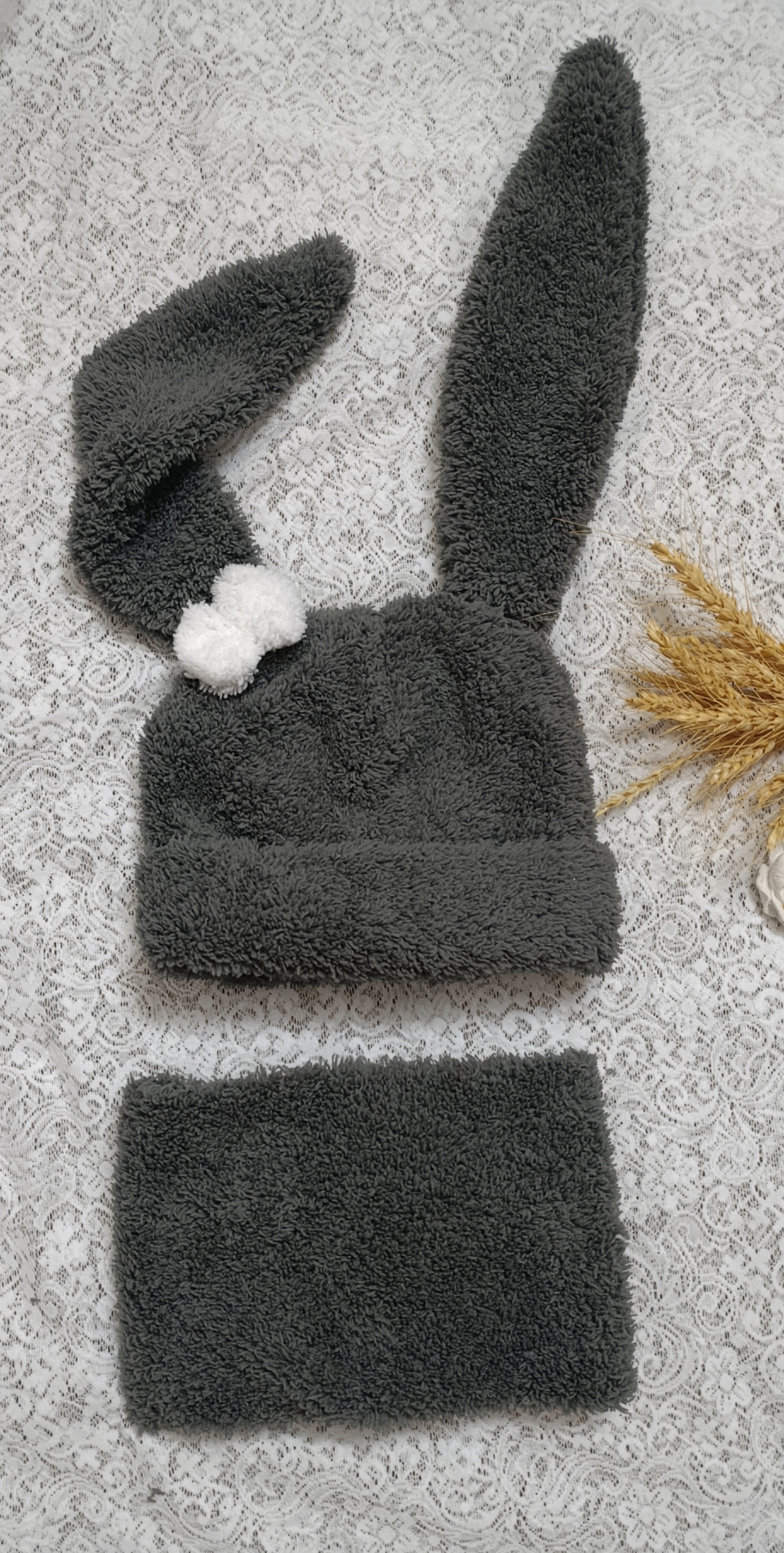 کلاه خرگوشی و شال رینگی جنس تدی نرم رنگ طوسی تیره۴۵۵٬۰۰۰ 1%