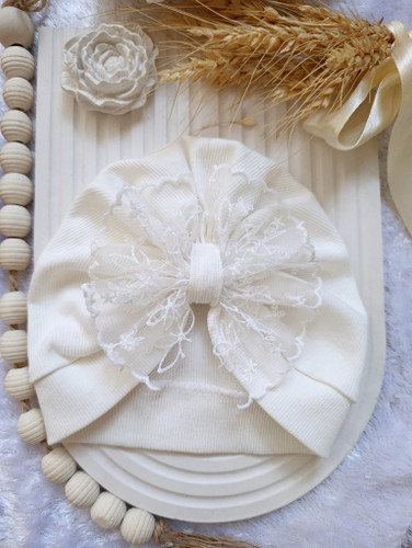 توربان نوزادی مرواریدی رنگ شیری جنس تریکو پنبه نرم