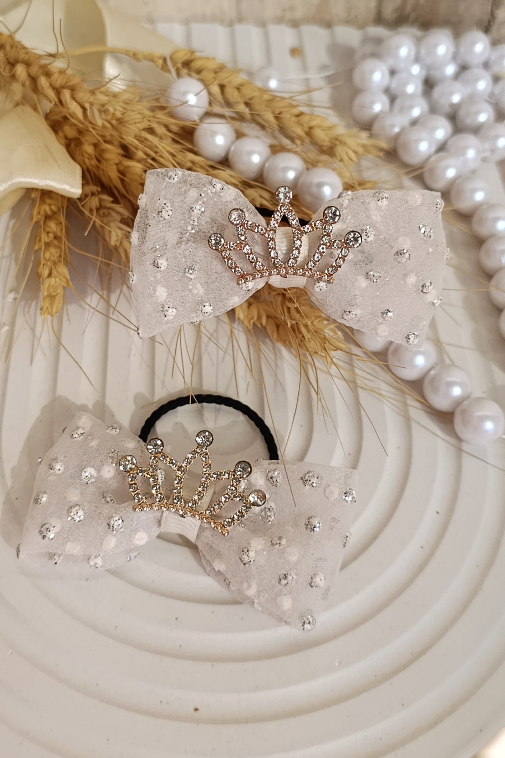 کش مو مرواریدی سفید با تاج ۵س