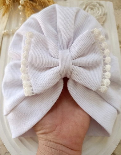 توربان تریکو نوزادی پنبه یی نرم و ضدحساسیت رنگ سفید نوزادی تا ۳ماه