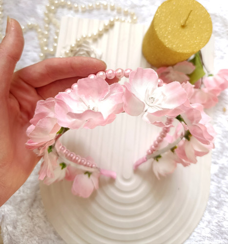 تل دوبل مرواریدی گل بهاری با رنگ صورتی سبک و راحت مناسب جشن