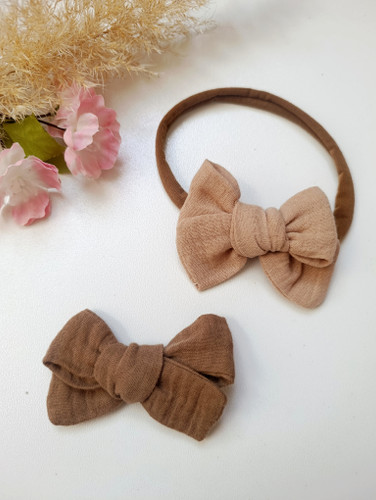 پک هد بند و گیره پاپیون مینیمال رنگ نود پارچه موسلین