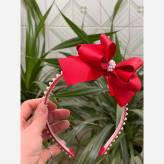 تل پاپیون حجیم مجلسی با ربان ساتن براق باکیفیت روی تل نگین و مروارید کار شده