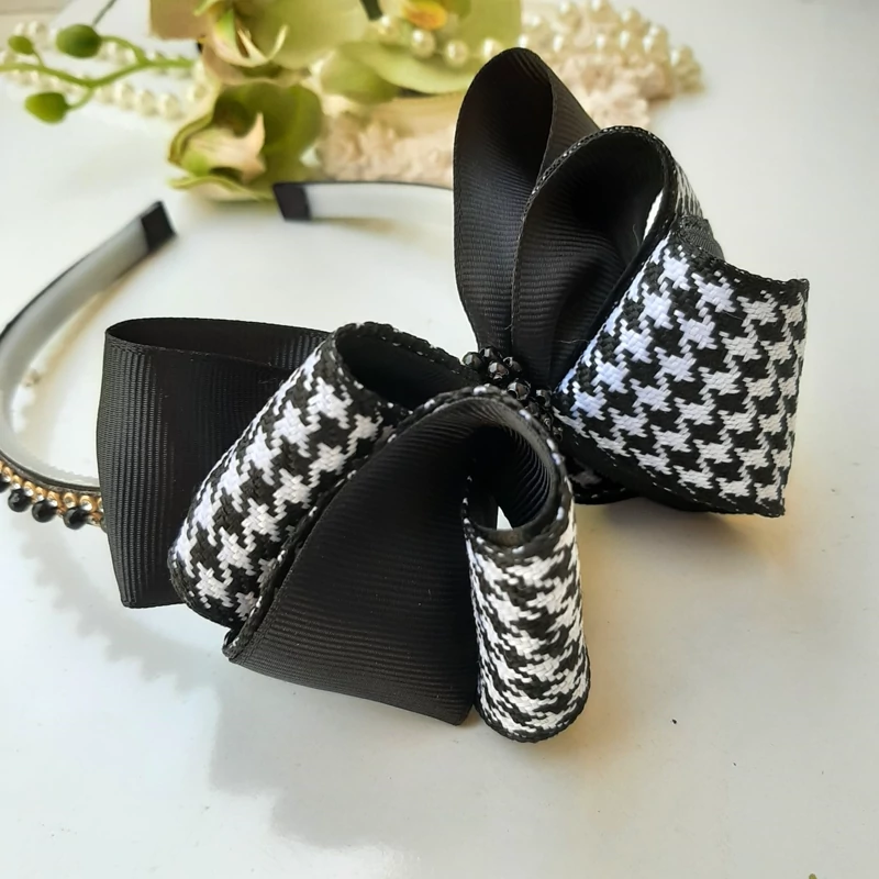 تل پاپیون حجیم مجلسی با ربان ساتن براق باکیفیت روی تل نگین و مروارید کار شده