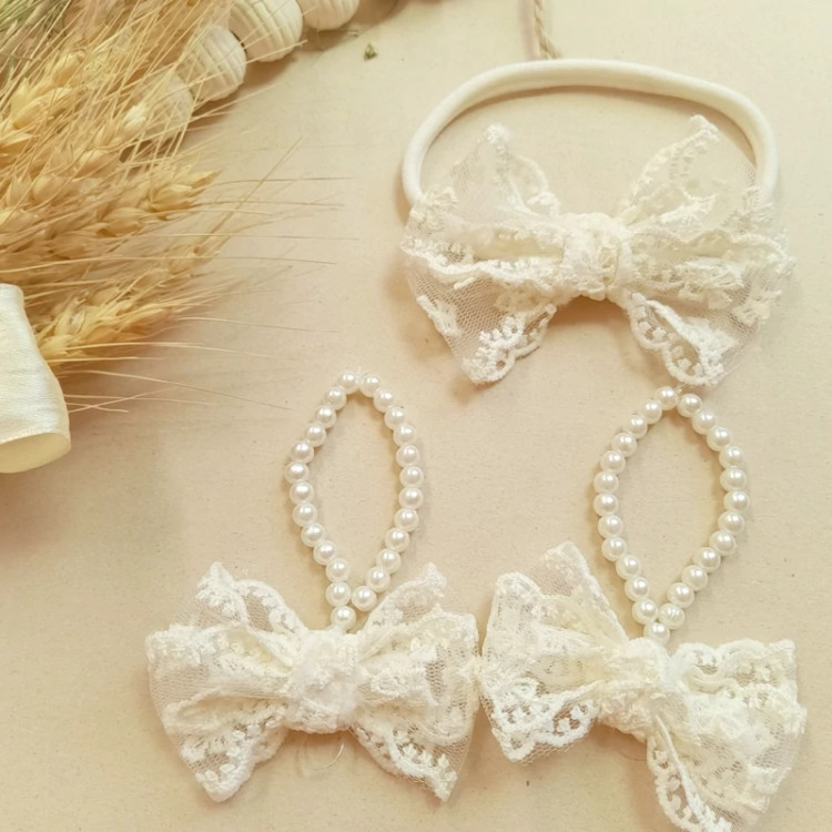 ست هد بند و پابند با تور ژورنالی بسیار خفن و لاکچری طور برا عکاسی عالیه .مناسب برای نوزاد تا ۱سال