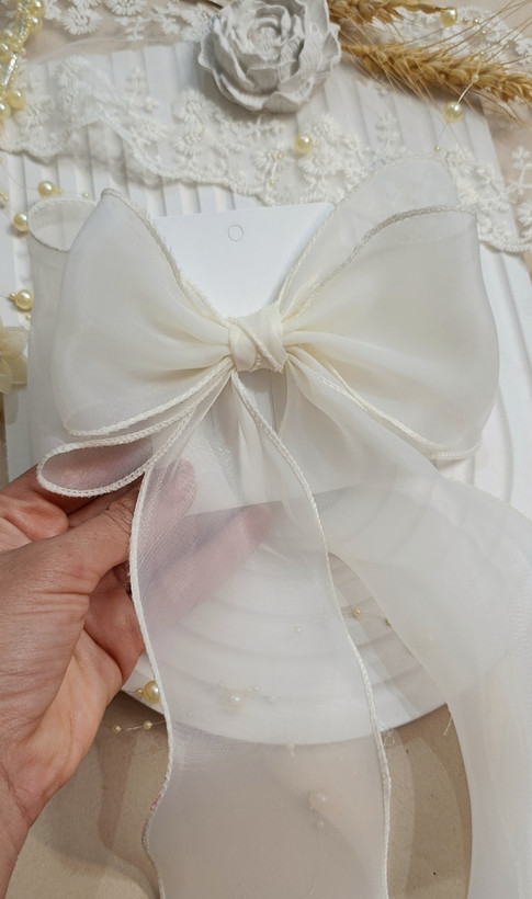 گیره پاپیون حریر لب فر رنگ شیری روشن