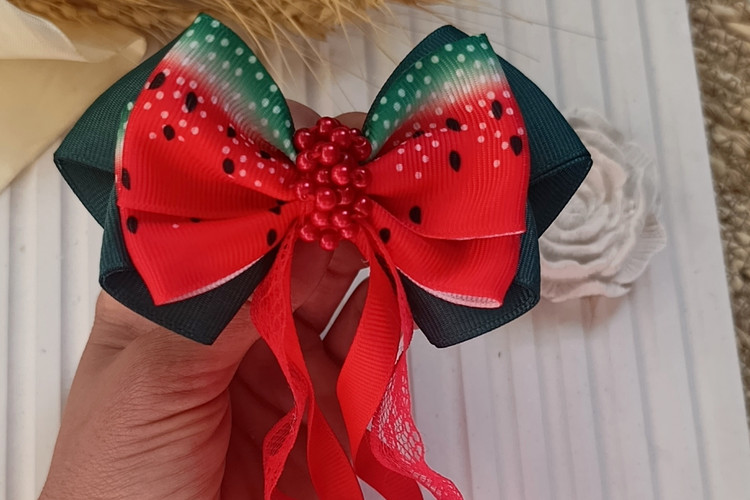 گیره یلدایی ،پشت کار گیره انبری داره ،طول آویز ۲۵س.پهنای پاپیون حدودی ۱۲س