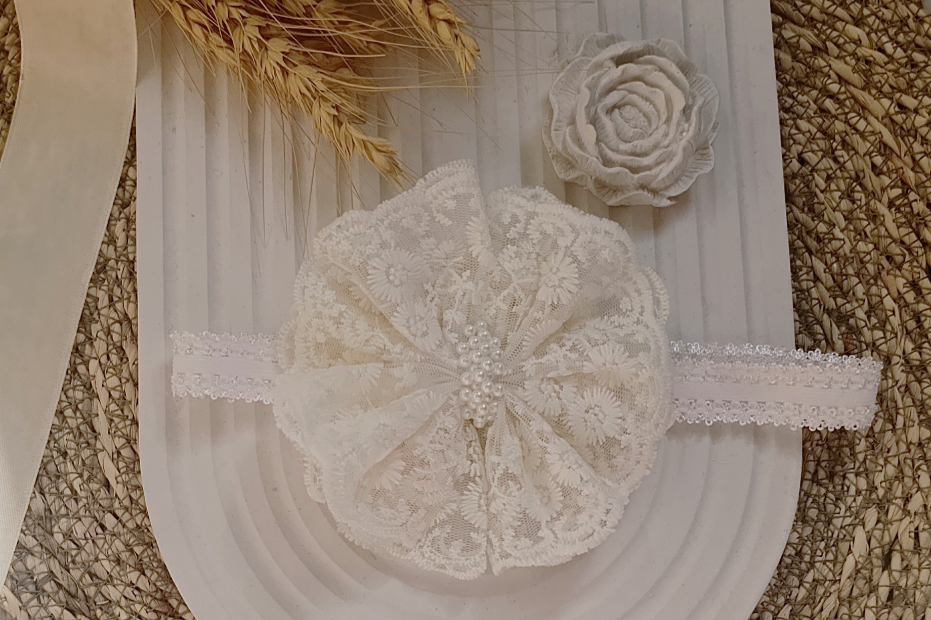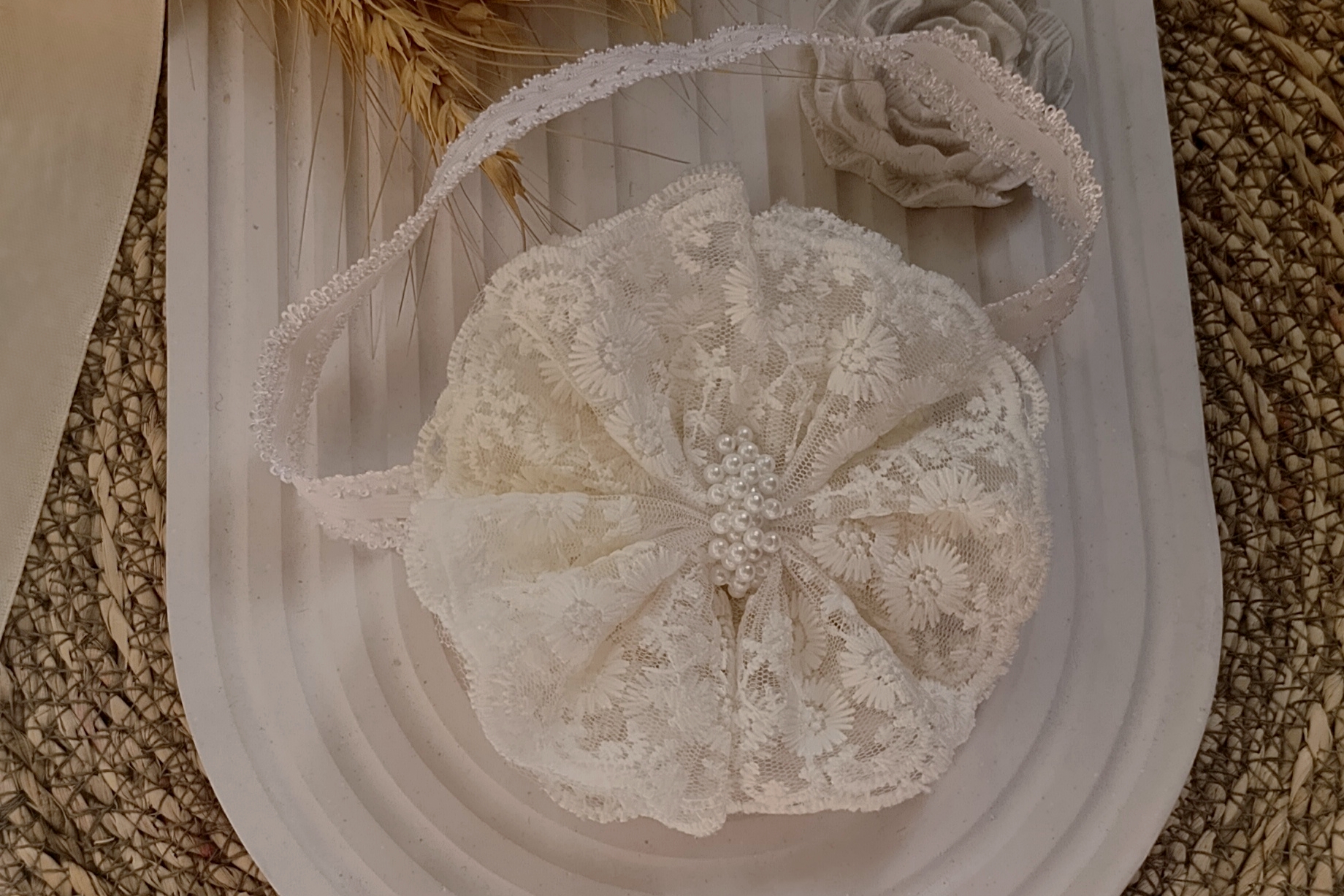 هد دوبل لاکچری تور ژورنالی و مرواریدها دوخته شده در رنگ شیری