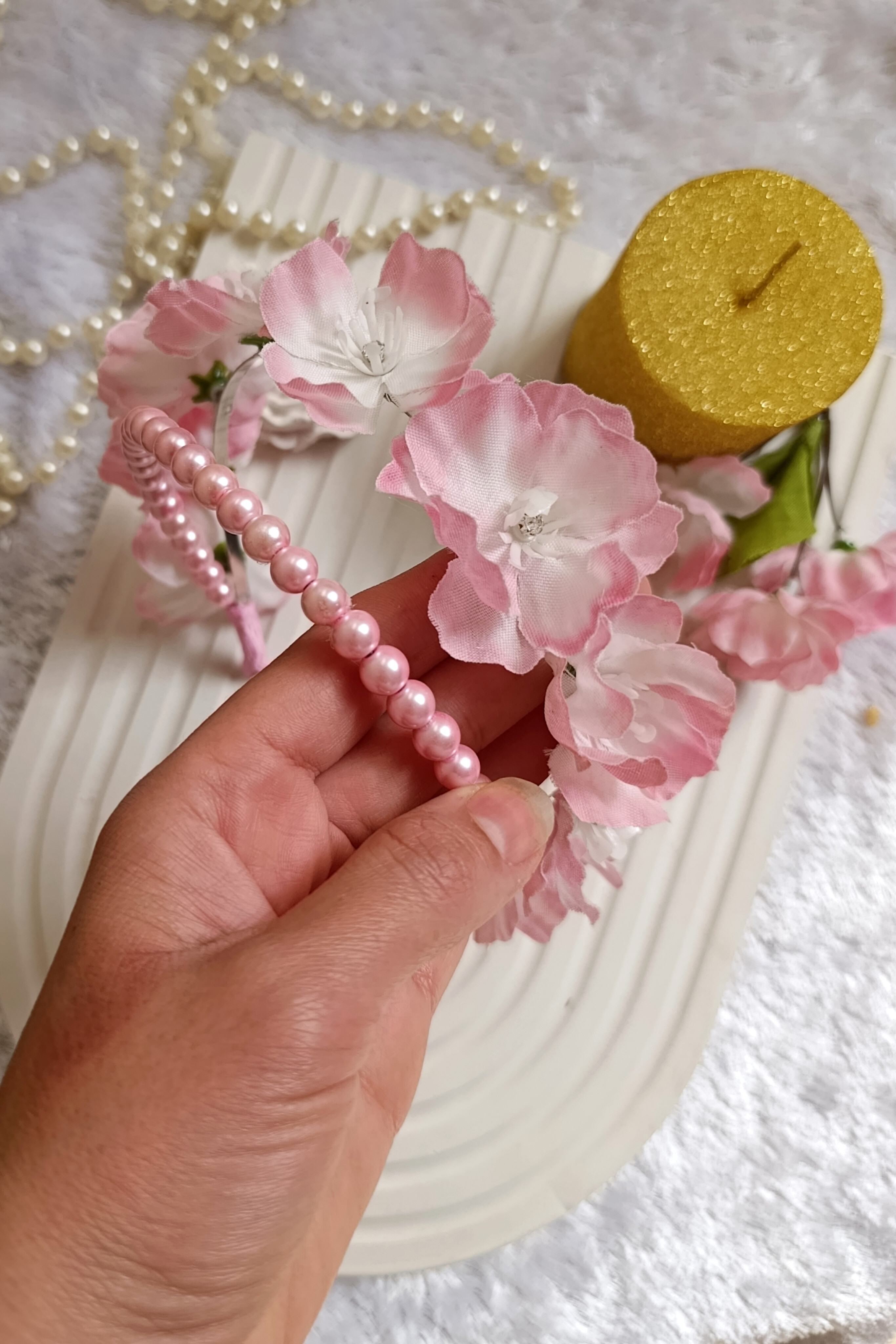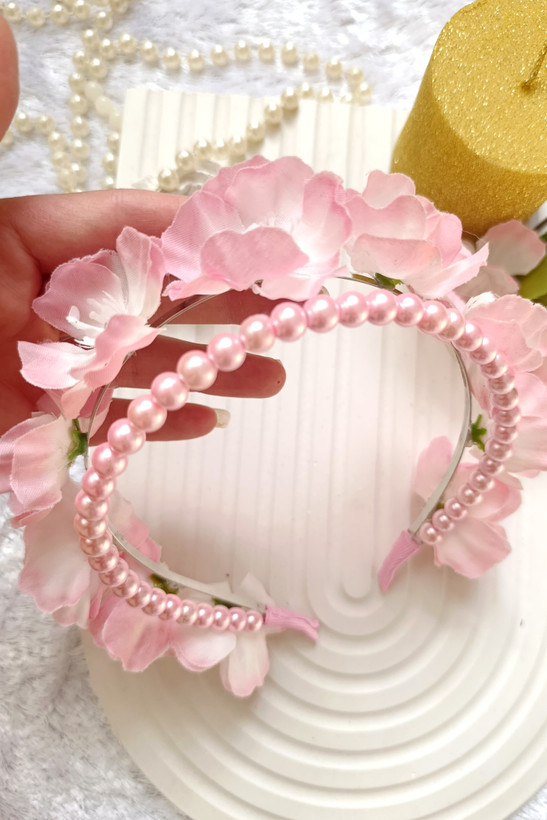 تل دوبل مرواریدی گل بهاری با رنگ صورتی سبک و راحت مناسب جشن