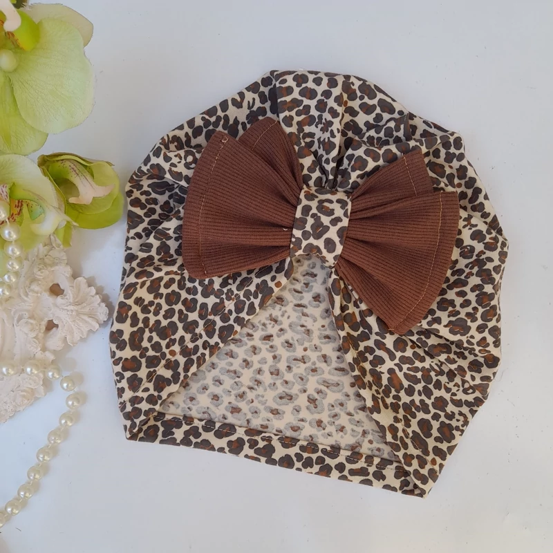 توربان پلنگی🐆 جنس پنبه لاکرا درجه یک نرم و لطیف و سبک و خنکک از نوزادی تا کودک .براتون میدوزم . سوالی بود در خدمتم