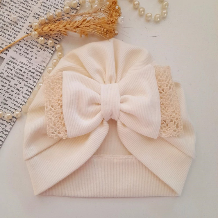 توربان تریکو پاپیونی رنگ شیری مناسب نوزاد 3تا6 ماه 6تا9 ماه جنس تریکو پنبه درجه یک کشسانی عالی نرم و ضد حساسیت