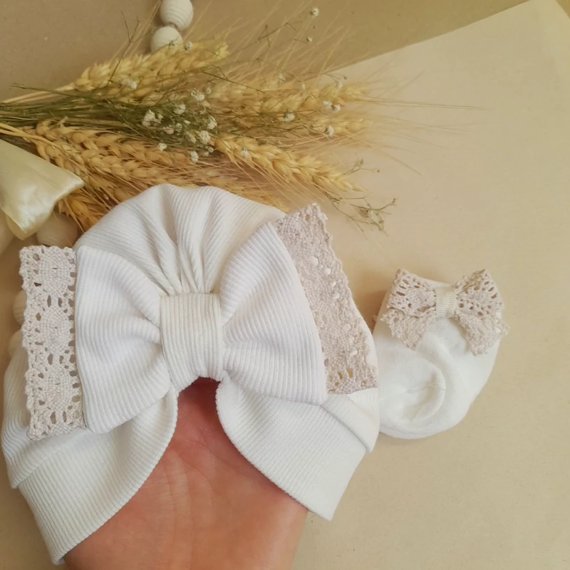 ست نوزادی بیمارستانی جنس تریکو کبریتی و جوراب نخ پنبه نرمو لطیف