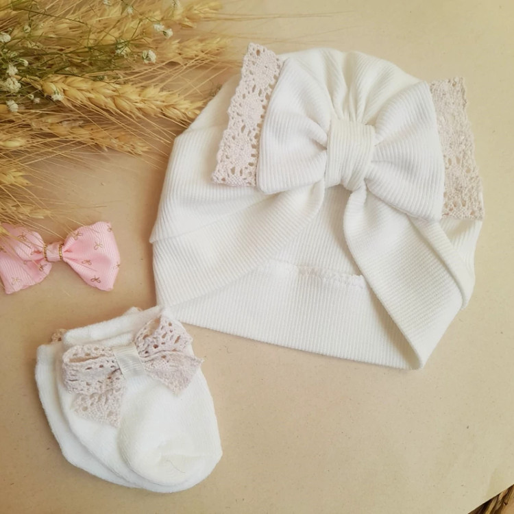 ست نوزادی شامل یک عدد توربان تریکو و یک جفت جوراب سایز صفر برای نوزاد جنس توربان، تریکو پنبه ای و عالیه و نرم و کشسانی عالی داره جوراب هم نخ پنبه با کیفیت.بدوتولد