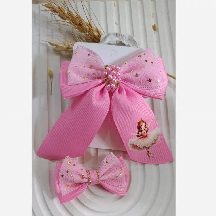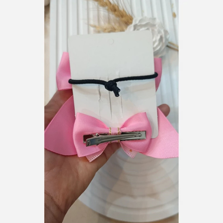 پک گلسر پاپیونی صورتی شامل یک عدد کش مو و گیره انبری