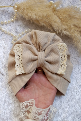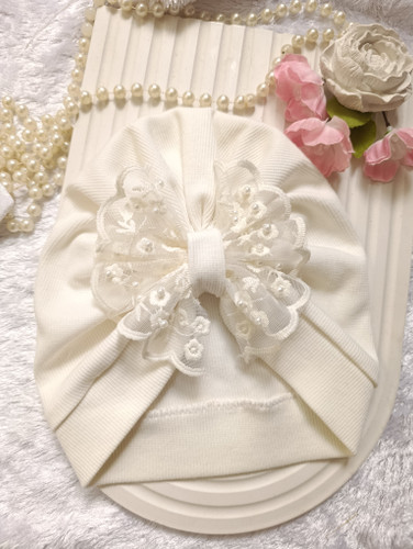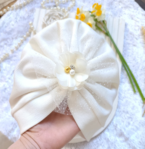 توربان نوزادی مرواریدی رنگ شیری جنس تریکو پنبه نرم